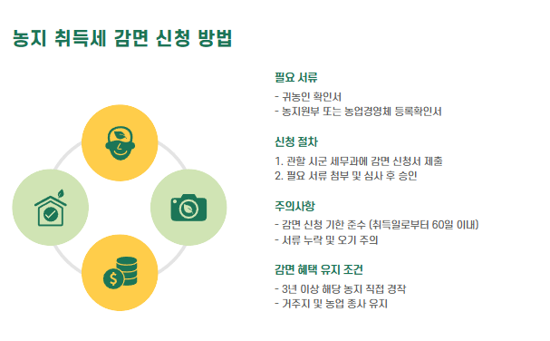 특히 귀농인, 자경농민 등은 취득세 감면 혜택을 받을 수 있으므로, 관련 정보를 미리 숙지하는 것이 중요합니다.