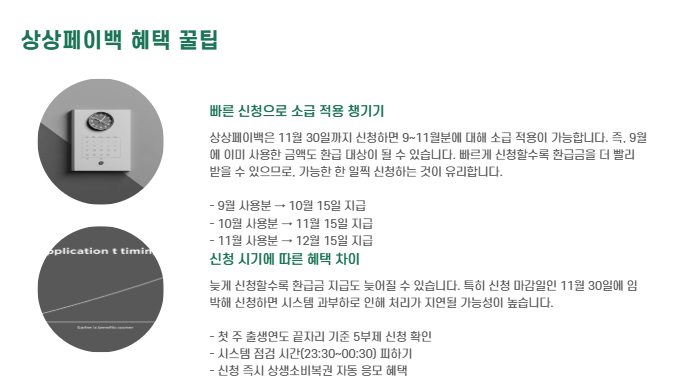 - 늦게 신청해도 소급 적용되지만, 지급이 12월 중순으로 밀릴 수 있음