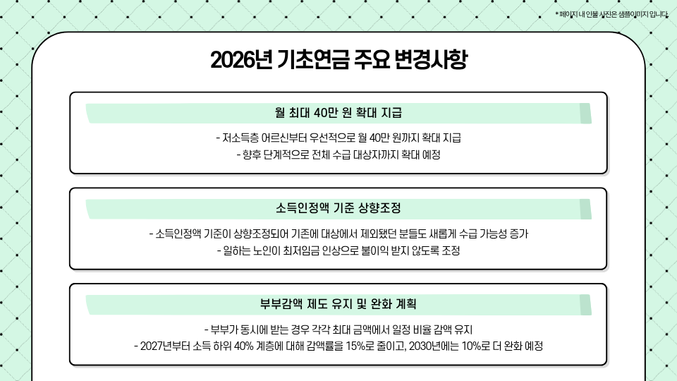 2026년부터 기초연금 금액이 큰 폭으로 인상되고 수급 기준도 달라질 예정입니다.
