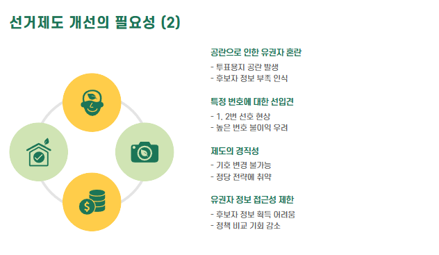 - 번호 대신 정당·이름 중심 투표: 기호 중심 투표 방식 축소