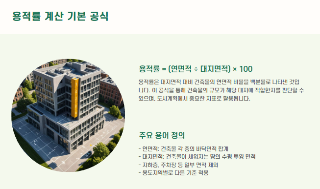 ✅ 용적률(%) = (건물 연면적 ÷ 대지면적) × 100
