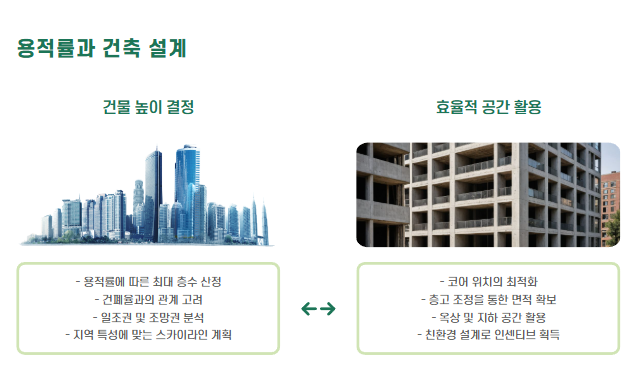 | 영향 | 건물의 층수와 전체 규모 결정 | 건물의 배치와 주변 공간 확보 |