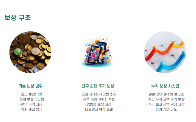- 보상금 지급: 하루 최대 100번까지 참여 가능하며, 최대 5만 원까지 받을 수 있습니다.