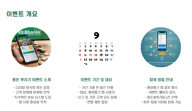 이벤트에 대한 자세한 내용은 케이뱅크 공식 홈페이지 또는 앱 내 이벤트 페이지를 통해 확인하실 수 있습니다. 참여 방법과 주의사항을 숙지하시고, 이벤트 기간 내에 참여하여 혜택을 누리시기 바랍니다.