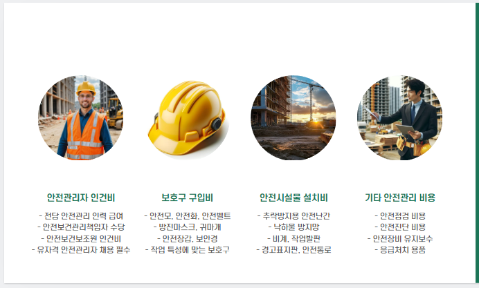 | 안전교육·훈련비 | 신입 근로자 안전교육, 훈련비 등 |