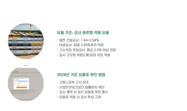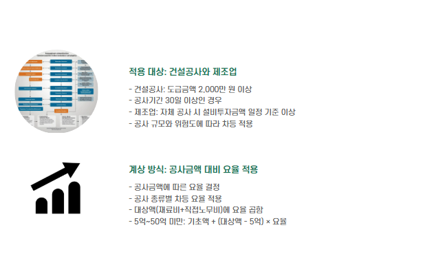 - 요율은 공사종류, 금액, 공사 기간 등에 따라 차등 적용됨