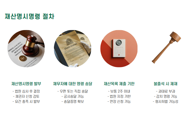 - 신청 후 확보한 정보로 급여 압류, 부동산 경매 등 집행 절차 가능