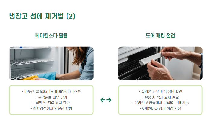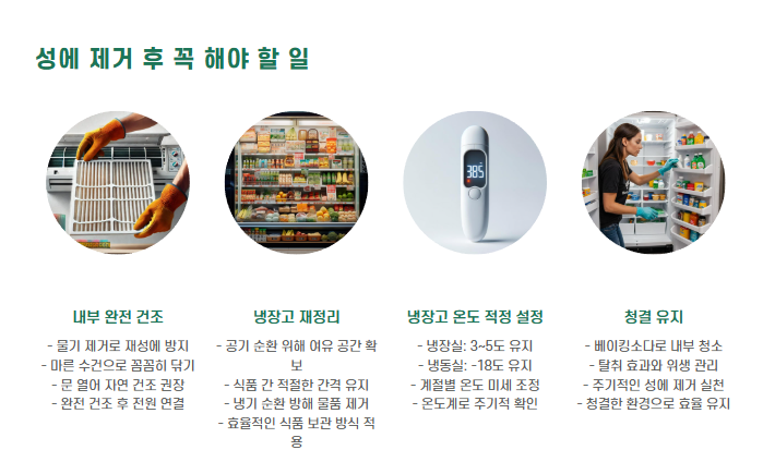 | 주기적인 내부 청소 | 위생과 성에 예방 동시 해결 |