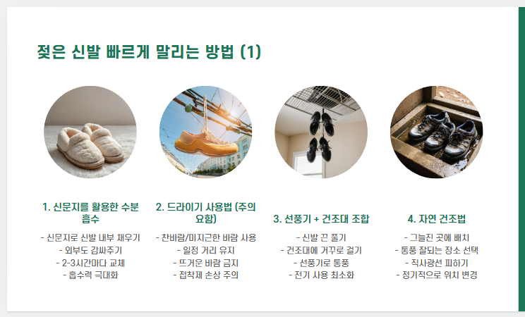 오늘은 젖은 신발 빨리 말리는 법 5가지와 함께, 신발 종류별 말리는 팁까지 총정리해드립니다.