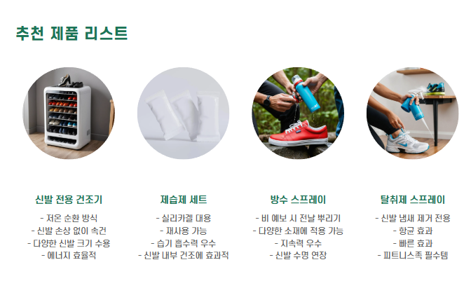 - 방법: 신발 안에 제습제를 넣으면 수분을 빠르게 흡수합니다.