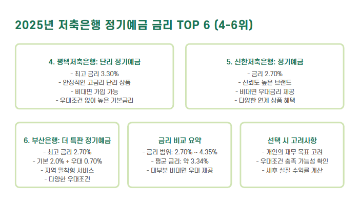 ※ 금리는 세전 기준이며, 실제 수령 이자는 세후 기준으로 계산해야 합니다. 이자소득세(15.4%)를 고려하세요.