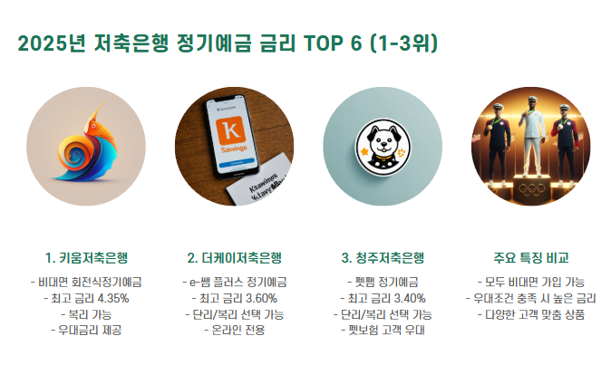 | 청주저축은행 | 펫팸 정기예금 | 최고 3.40% | 단리/복리 선택 가능, 펫보험 고객 우대 |