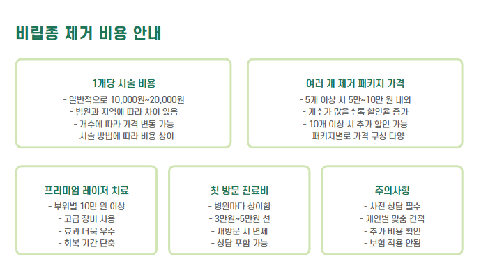 💡 병원에 따라 첫 방문 진료비가 추가될 수 있고, 개수에 따라 패키지 할인이 적용되는 경우가 많습니다. 사전 상담은 필수입니다.
