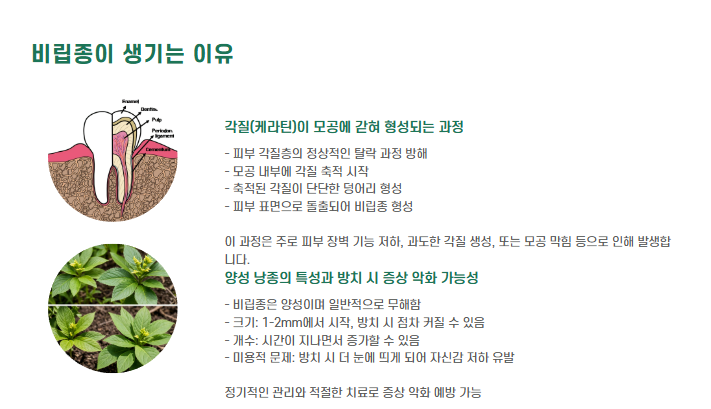 - ▶ 반복적 재발: 내부 각질 덩어리가 남아있으면 똑같은 부위에 다시 생깁니다.
