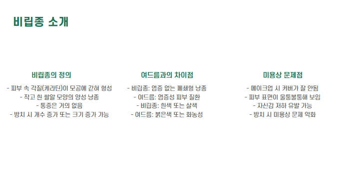 피부에 작고 하얀 알갱이처럼 만져지는 비립종, 특히 눈가나 뺨에 오돌토돌 올라오면 메이크업도 잘 안 먹고 미용상 신경이 쓰이기 마련입니다. 많은 분들이 여드름으로 착각하시지만, 비립종은 전혀 다른 피부 질환입니다.