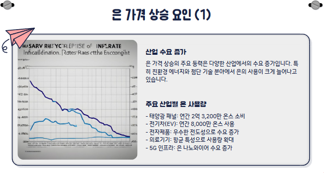 - 전자제품 및 의료기기: 은의 우수한 전도성과 항균성으로 인해 전자제품과 의료기기 분야에서도 수요가 꾸준히 증가하고 있습니다.