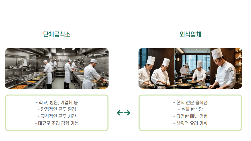 - 해외 취업: 한식의 세계화에 따라 수요 증가