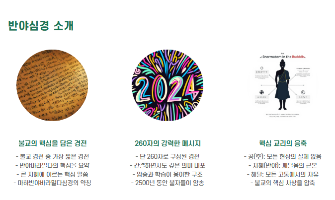 반야심경은 짧지만, 모든 불교 경전의 햄심을 밤고 있는 경전입니다.