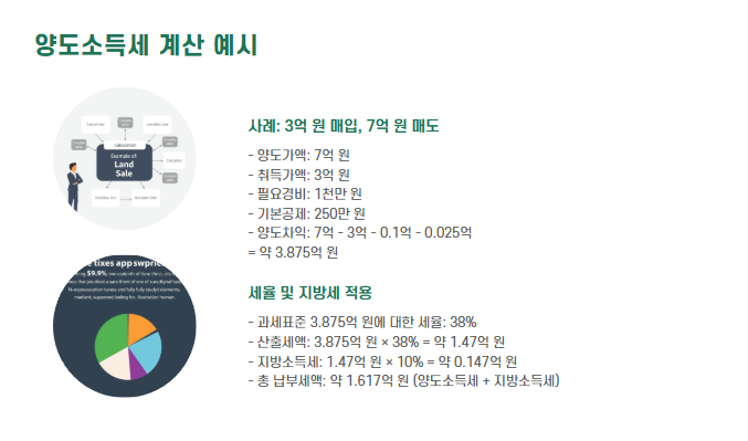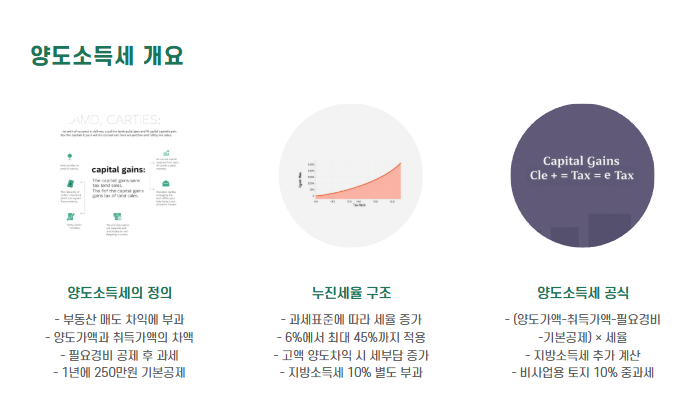 이는 부동산을 팔아 생긴 차익에 대한 세금이며, 금액이 클수록 누진세율로 세금 부담도 커지는 구조입니다.