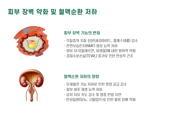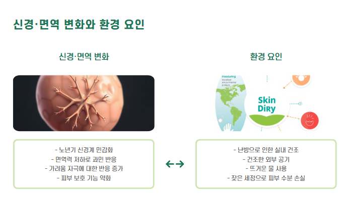– 노년 가려움의 핵심은 ‘속건조 + 장벽 약화’