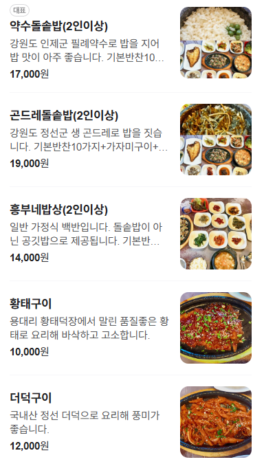 추천 메뉴: 황태국밥, 송이황태국밥, 황태구이