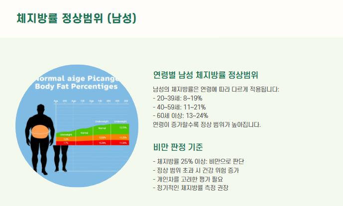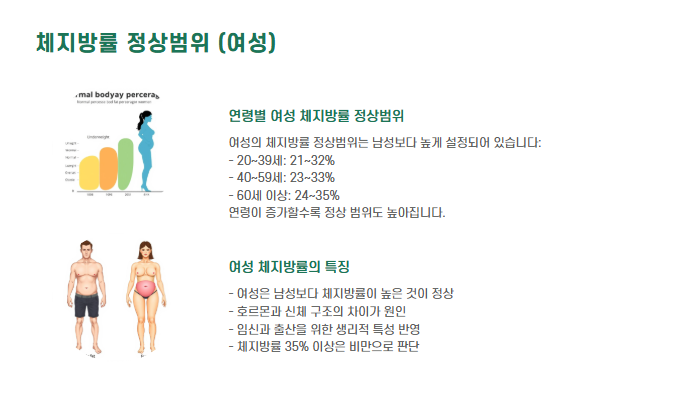 ➡ 남성 20% 이상, 여성 30% 이상이면 감량을 고려하는 것이 좋습니다.