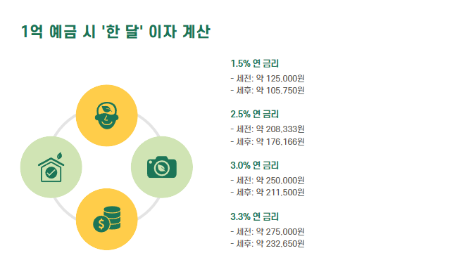요즘 같은 고금리 시대에 '1억 예금하면 한 달 이자가 얼마나 될까?' 궁금하신 분들 많으시죠?
