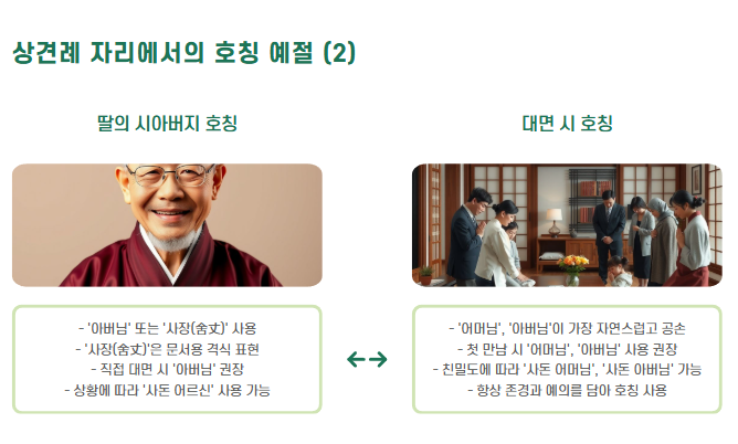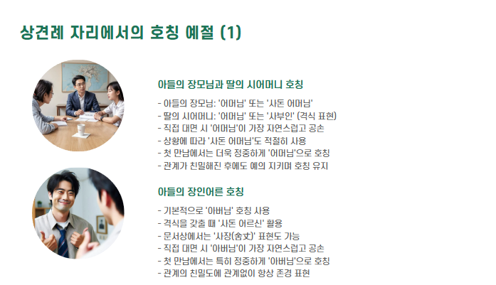 상견례나 경조사처럼 중요한 자리에서는 적절한 호칭과 예의를 지키는 것만으로도 서로에 대한 신뢰와 인상을 높일 수 있습니다.