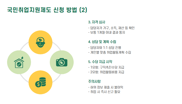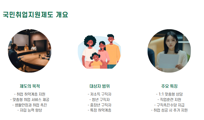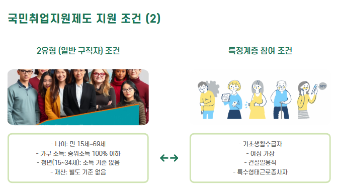 - 참여 제한: 생계급여 수급자, 실업급여 수급 종료 후 6개월 이 내자는 제외