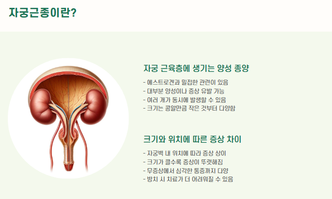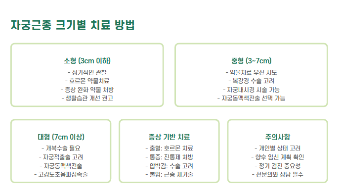 * 주의사항: 폐경 전/후, 임신계획 유무, 다른 질환(자궁내막증 등) 동반 여부에 따라 치료법이 달라질 수 있습니다. 반드시 전문의와 상담이 필요합니다.