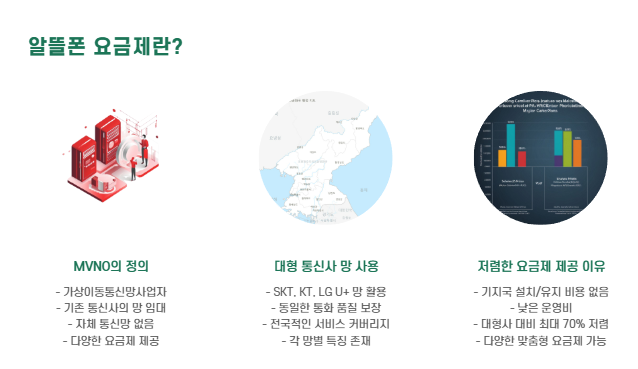 망은 같지만, 기지국을 직접 설치하거나 유지하지 않기 때문에 운영비가 낮고, 그만큼 요금제를 더 싸게 제공할 수 있어요.