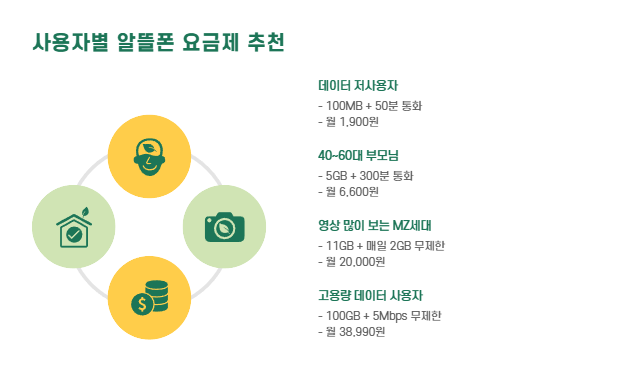 | 40~60대 부모님 | 5GB + 300분 통화 (약 월 6,600원) |