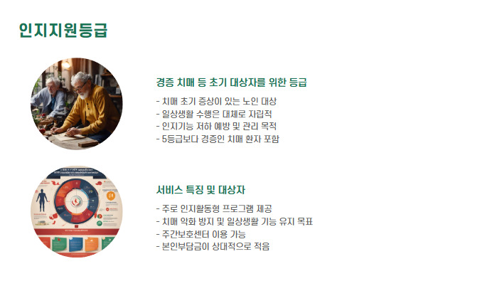 - 인지지원등급: 경증 치매 등 초기 대상자