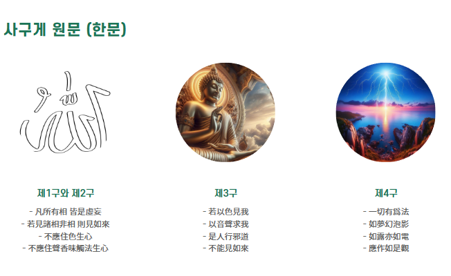 사구게는 ‘응무소주 이생기심’으로 대표되며, 금강경의 핵심 사상을 운문 형식으로 담은 명구사(火)로 널리 알려져 있습니다.