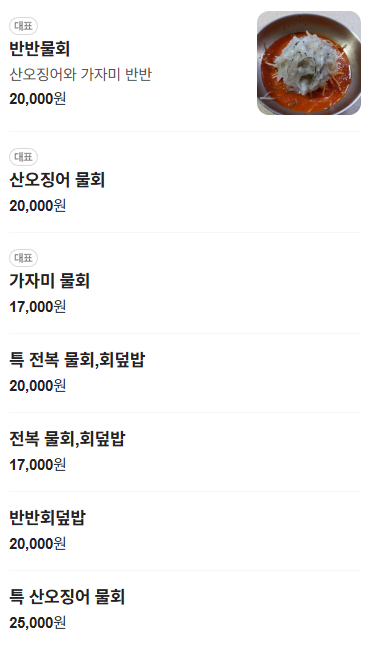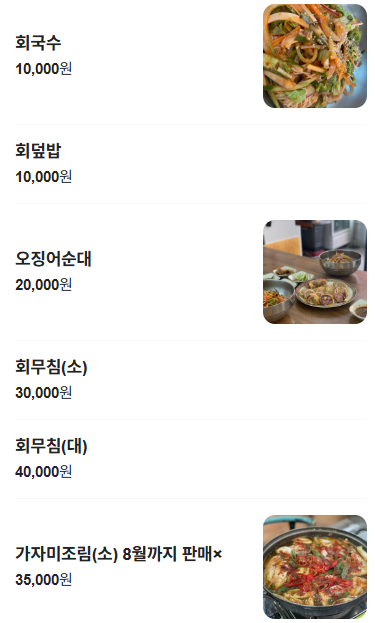 - 대표 메뉴: 산오징어 물회, 가자미 물회