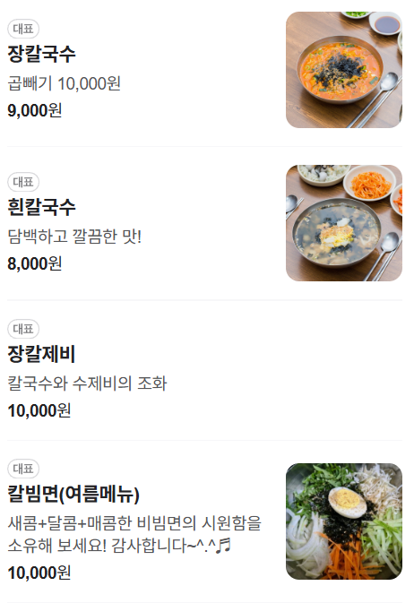 - 대표 메뉴: 장칼국수