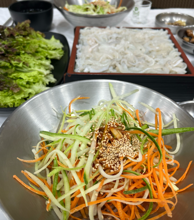 - 가자미회+소면 각 재료 밸런스 좋아요.