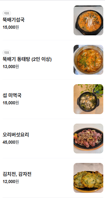 - 대표 메뉴: 섭국, 동태탕, 감자전